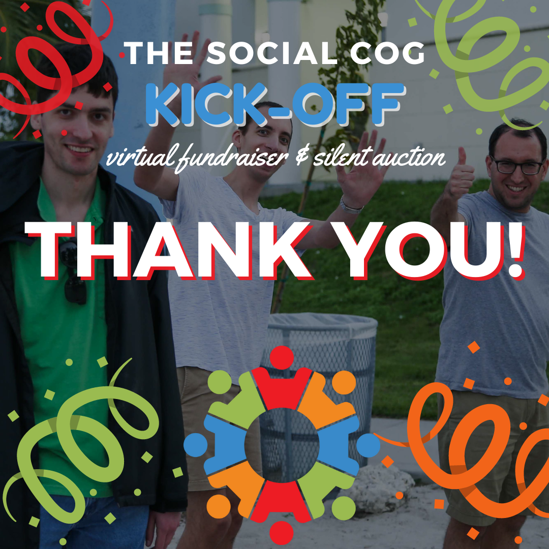 August 16th-21st, 2021The Social Cog’s Kick-Off Virtual Fundraiser raised over $20,700! This event was live from August 16th through August 21st with an opportunity to donate or participate in out silent auction with awesome prices. We are so grateful to everyone who participated, either through direct donations, Silent Auction purchases, or just sharing and getting the word out. We are so fortunate to have such a strong community that understand the importance of what The Social Cog does for its Members. You are wonderful and we are forever grateful for you. You made a difference in our Members’ lives. Thank you all.